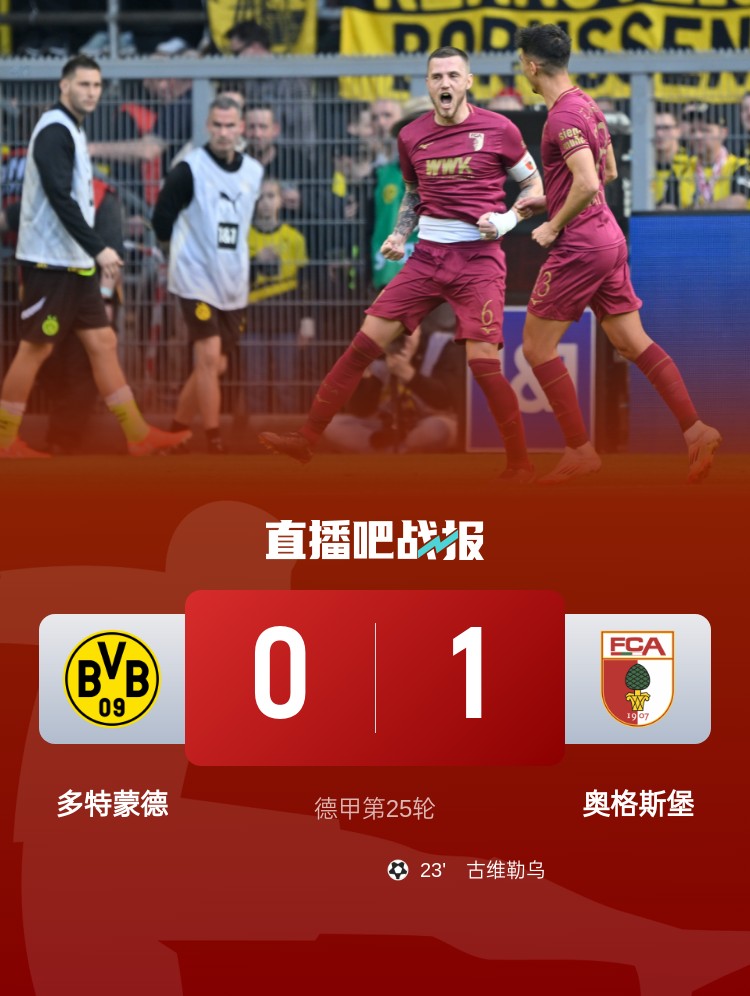 近5場首??!多特0-1奧格斯堡 布蘭特進球無效古維勒烏頭球制勝