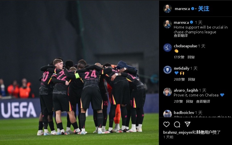 馬雷斯卡社媒寫(xiě)道:主場(chǎng)球迷的支持,是我們爭(zhēng)奪歐冠資格的動(dòng)力?。ㄓ⒊八模?/p>