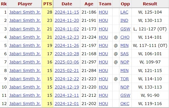賈巴里-史密斯本賽季得分15+的比賽火箭12勝1負(fù) 只輸給勇士