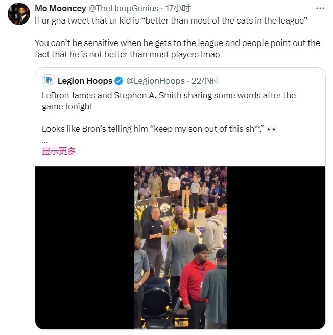 而BBC記者Mo Mooncey近日在點評詹姆斯與A-史密斯對峙事件時批評詹姆斯說:“如果你發(fā)推說你的兒子‘比聯(lián)盟大多數(shù)的阿貓阿狗更強’,那當你兒子進入聯(lián)盟之后,人們開始指出他并沒有比大多數(shù)球員要強的事實時,你就不能如此敏感?!?/p>