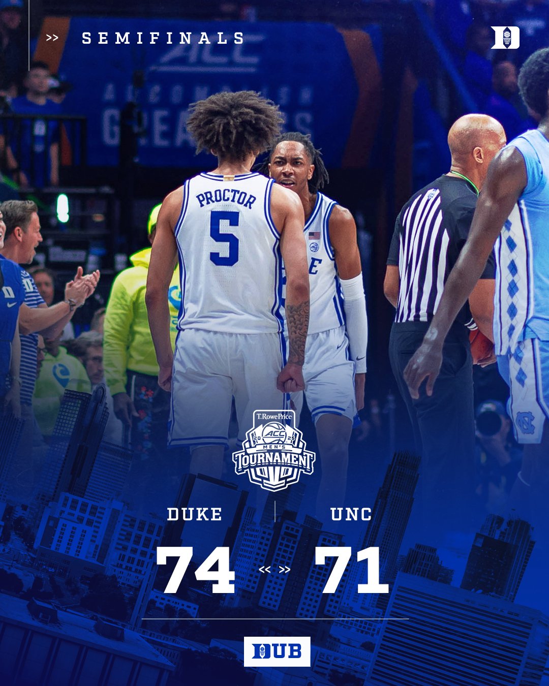 03月15日訊 ACC錦標(biāo)賽半決賽,杜克74-71險(xiǎn)勝北卡,挺進(jìn)決賽。