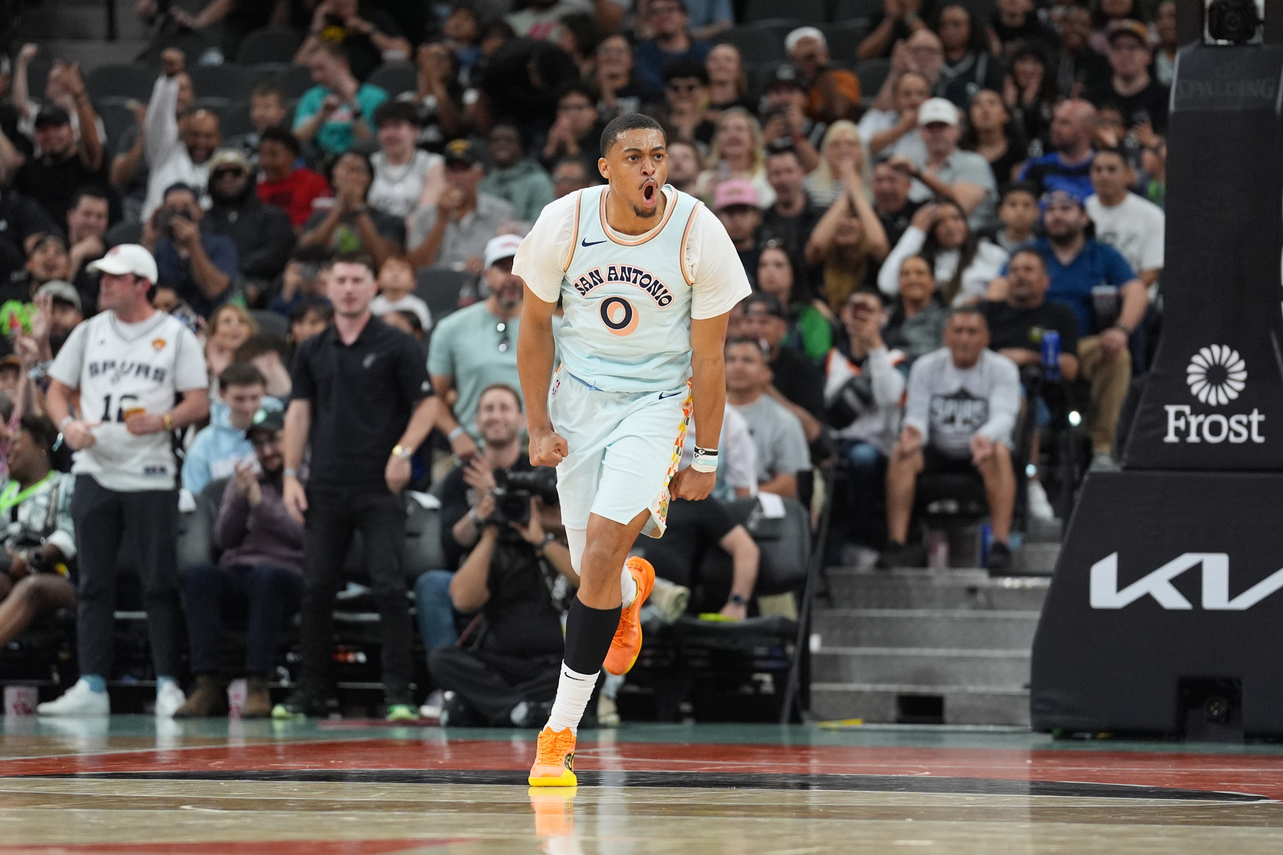 3月16日訊 NBA常規(guī)賽,馬刺119-115力克鵜鶘。賽后馬刺球員凱爾登接受了記者的采訪。