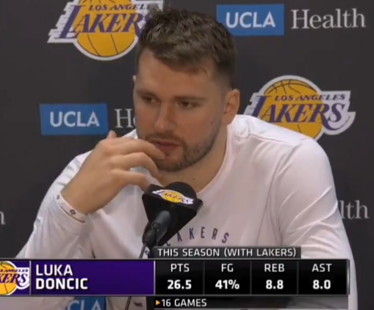 本賽季至今,東契奇在湖人(16場(chǎng)比賽)場(chǎng)均26.5分8.8籃板8助攻1.9搶斷,命中率41%。