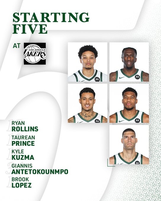 客場挑戰(zhàn)湖人!雄鹿今日首發(fā):字母哥領銜 表哥缺陣 庫茲馬戰(zhàn)舊主