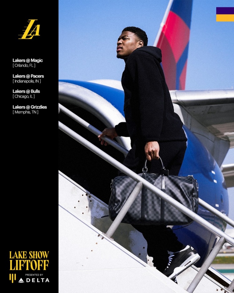 開啟4連客!湖人官推曬詹姆斯、八村塁和里夫斯登機(jī)照