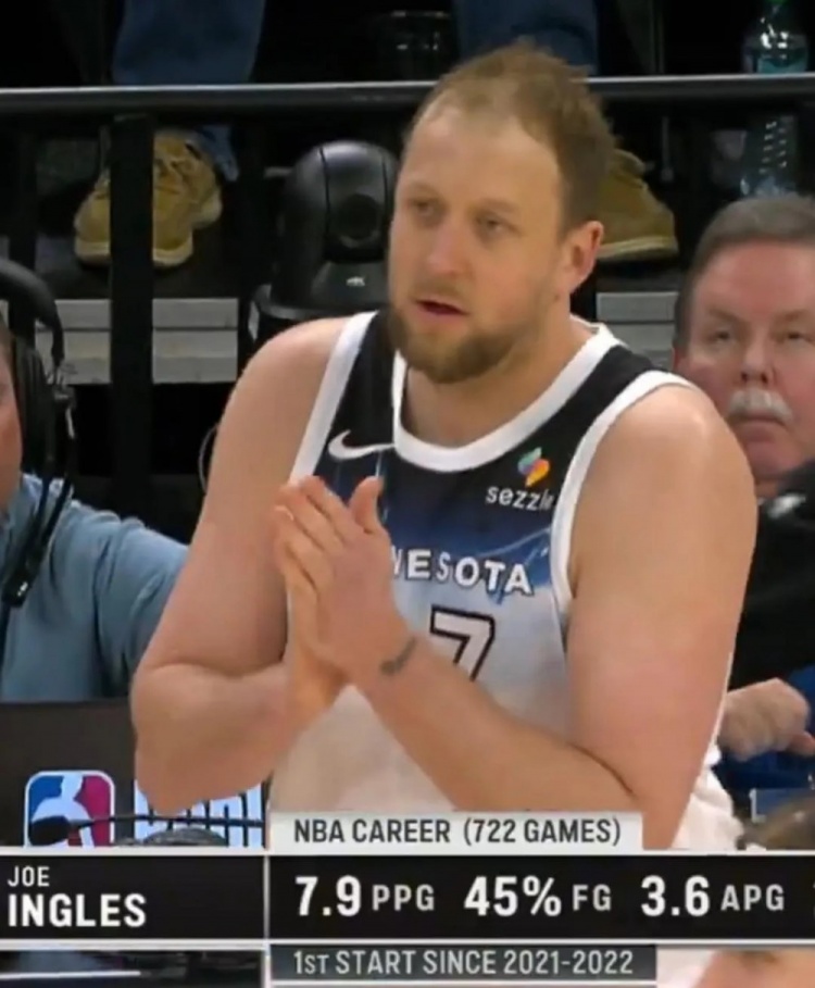 英格爾斯的表現(xiàn)并不算很出色,在6分鐘內他3投0中,沒有得分,只有1次助攻。但沒有人會苛責他,恰恰相反,一度因為2連敗而士氣低迷的隊友們,在他的感召下重燃斗志。他下場的時候比分是14:13,之后他沒有再次上場,森林狼最終狂勝鵜鶘41分。