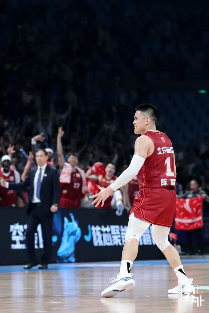 陳盈駿的一記關(guān)鍵三分球,讓首鋼球迷全體起立。