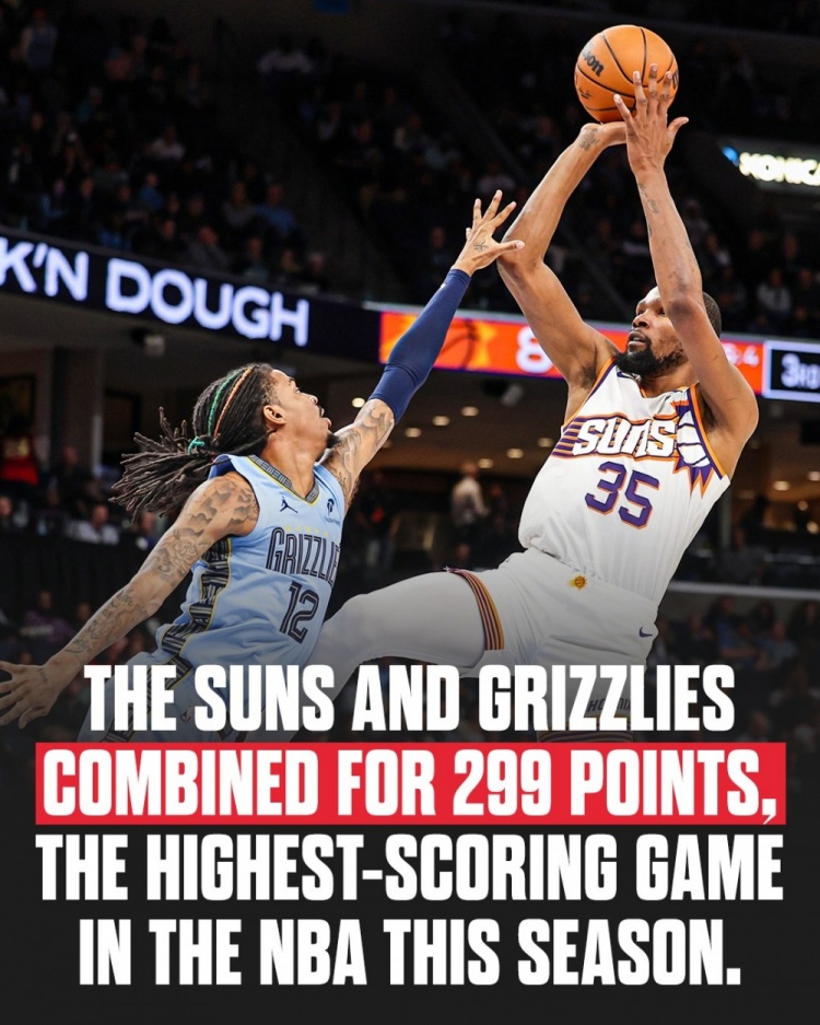 昨日太陽148-151惜敗灰熊 兩隊砍299分創(chuàng)本賽季單場得分紀錄