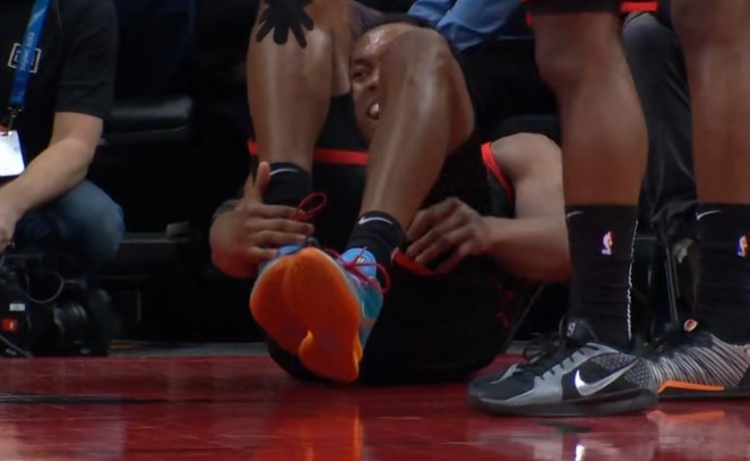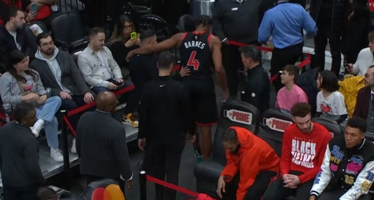 又雙傷了!斯科蒂-巴恩斯落地腳尖與莫格博對(duì)了一下 崴腳回更衣室