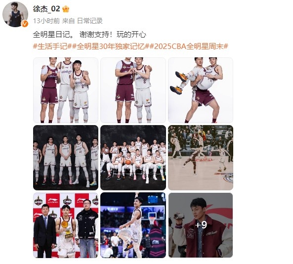 徐杰曬照回顧長春全明星之旅:全明星日記 謝謝支持 玩得開心