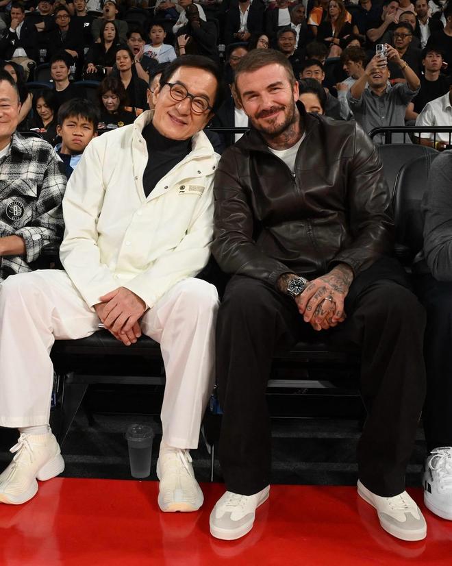 雷速體育10月11日訊 昨日晚間籃網(wǎng)對(duì)陣太陽(yáng)的NBA中國(guó)賽在中國(guó)澳門進(jìn)行,英格蘭傳奇球星&邁阿密國(guó)際老板貝克漢姆前往現(xiàn)場(chǎng)觀戰(zhàn),賽后他在個(gè)人社媒中曬出了與成龍、姚明和奧尼爾的合照。