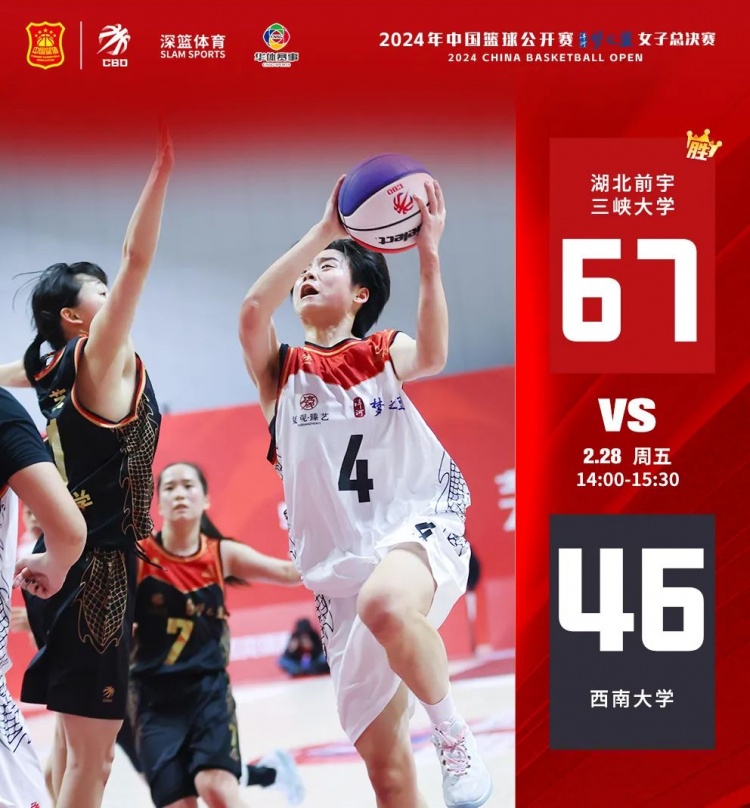 2月28日,2024年中國籃球公開賽洋河夢(mèng)之藍(lán)女子總決賽進(jìn)入到第四個(gè)比賽日。在本輪中,湖北前宇三峽大學(xué)、云南隊(duì)、湖南師范大學(xué)獲勝。