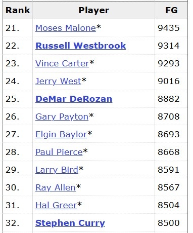 這樣一來(lái),庫(kù)里生涯投籃命中數(shù)達(dá)到8505個(gè),超越哈爾-格里爾升至歷史第31位!