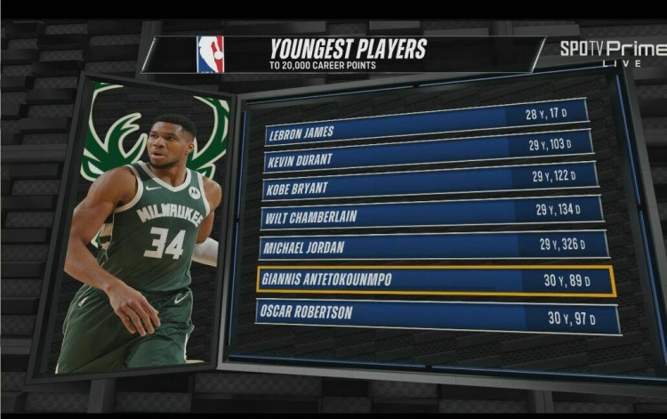 字母哥30歲89天解鎖2萬分歷史第6年輕 僅次于詹杜科&大帥&喬丹