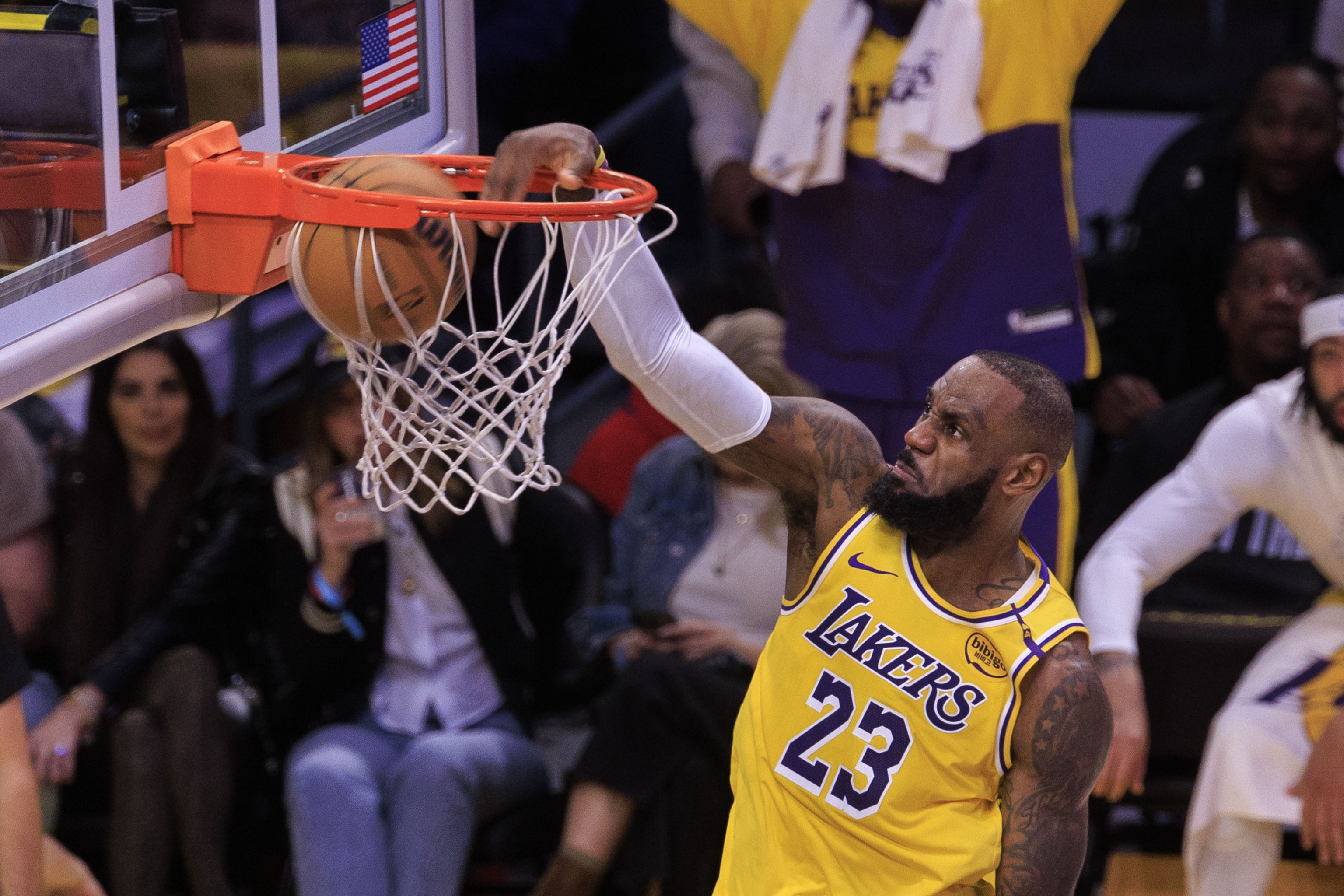 2022年3月6日,湖人124-116戰(zhàn)勝勇士,詹姆斯出戰(zhàn)38分33秒,31中19,三分11中6,罰球13中12,砍下56分10籃板3助攻1蓋帽。