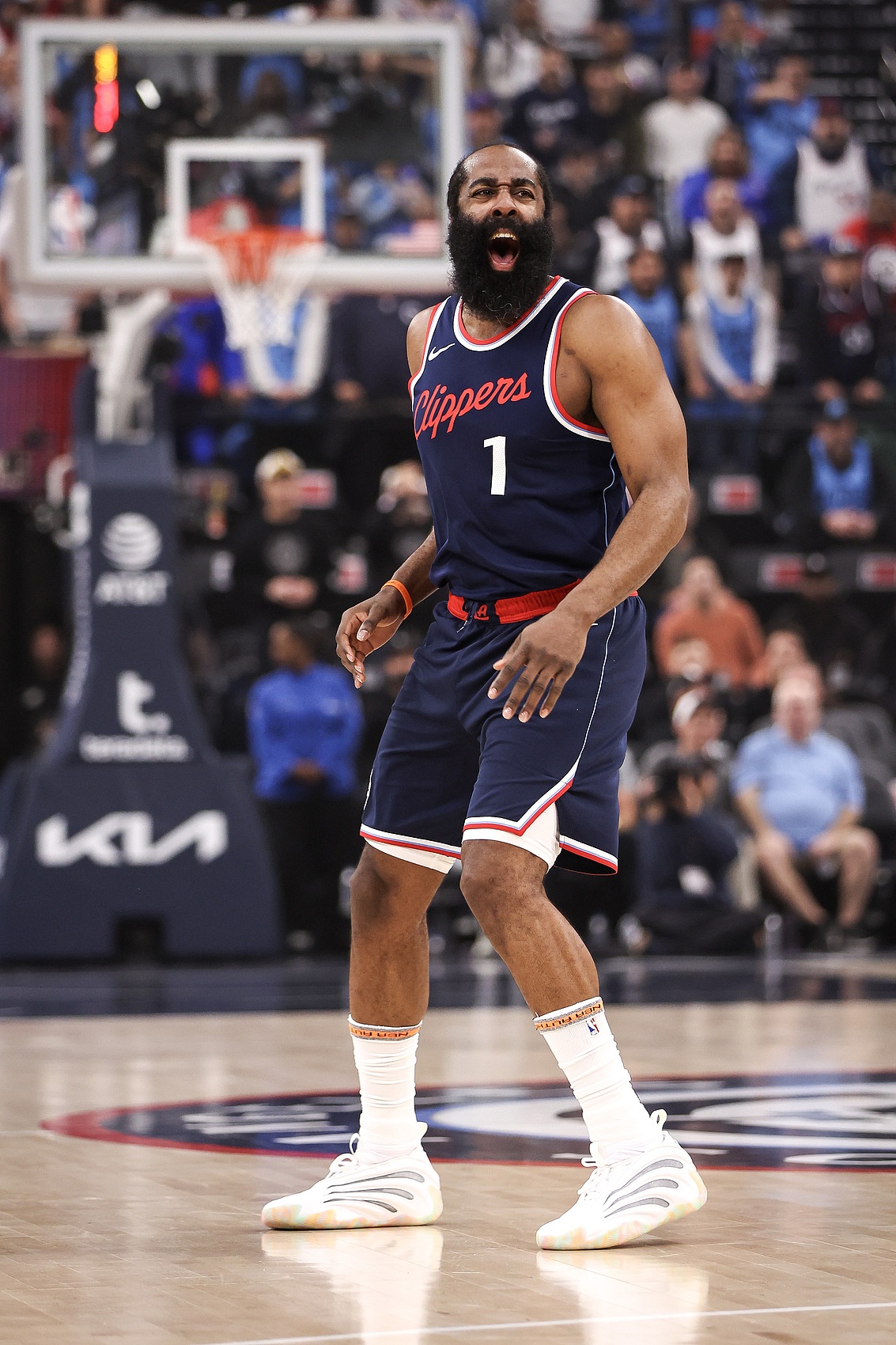 當(dāng)35歲的詹姆斯·哈登在末節(jié)突破暴扣后仰天怒吼時(shí),整個(gè)直覺穹頂球館的聲浪幾乎掀翻穹頂。這一刻,洛杉磯的夜晚屬于這個(gè)蓄著胡須的老兵——他像一把重燃的烈焰,將五年的質(zhì)疑與蟄伏燒成灰燼,用一場(chǎng)50分的超神表演,向世界宣告:那個(gè)掌控比賽、收割紀(jì)錄的“登峰造極”時(shí)刻,從未真正遠(yuǎn)去。