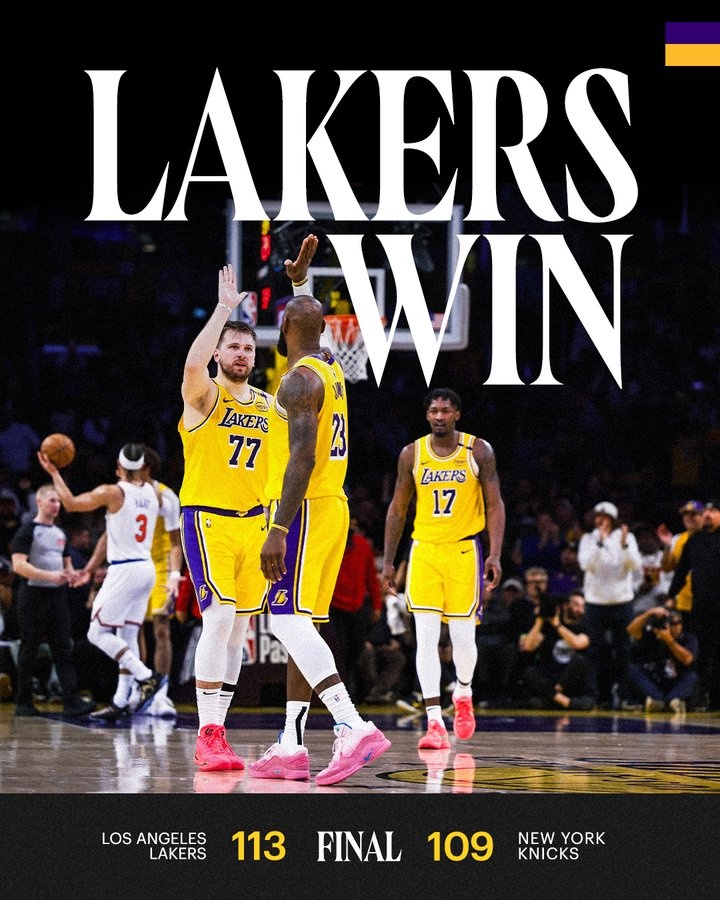 賽后湖人官方曬出本場(chǎng)贏球海報(bào),詹姆斯、東契奇和芬尼-史密斯登上封面。