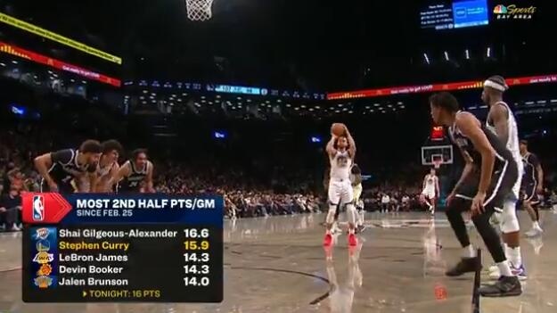 2月25日以來(lái)下半場(chǎng)場(chǎng)均得分:庫(kù)里15.9僅次于SGA 詹姆斯排第三