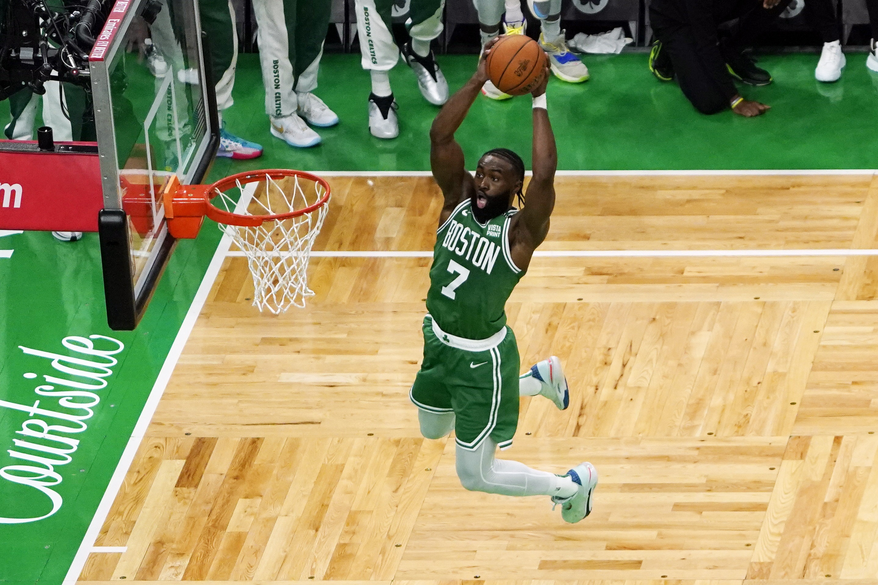 布朗說:“即便我們沒有把它作為明文規(guī)定寫下來,但球隊(duì)會(huì)跟隨我和塔圖姆的引領(lǐng)。雖然我們有很多優(yōu)秀的球員,但我覺得我的球隊(duì)依賴我來成為領(lǐng)袖,成為那個(gè)能大聲發(fā)言的領(lǐng)袖。我想說我已經(jīng)承擔(dān)起了這個(gè)角色,在防守端,我作為帶頭的人去承擔(dān)那些重要的對(duì)位任務(wù)。我的球隊(duì)會(huì)因此受到激勵(lì)。我想,這在某種程度上是我們之間的默契。”