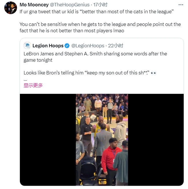 賽后,詹姆斯找到A史密斯對(duì)峙,詹姆斯表示:“老子不在乎,兄弟!不要把我兒子扯進(jìn)來(lái),兄弟!”