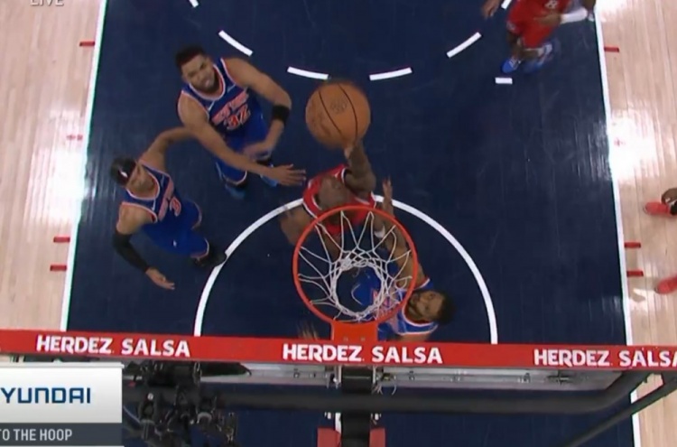 回頭望月!小卡猶豫步突破 籃下面對(duì)圍剿背對(duì)籃筐拋進(jìn)