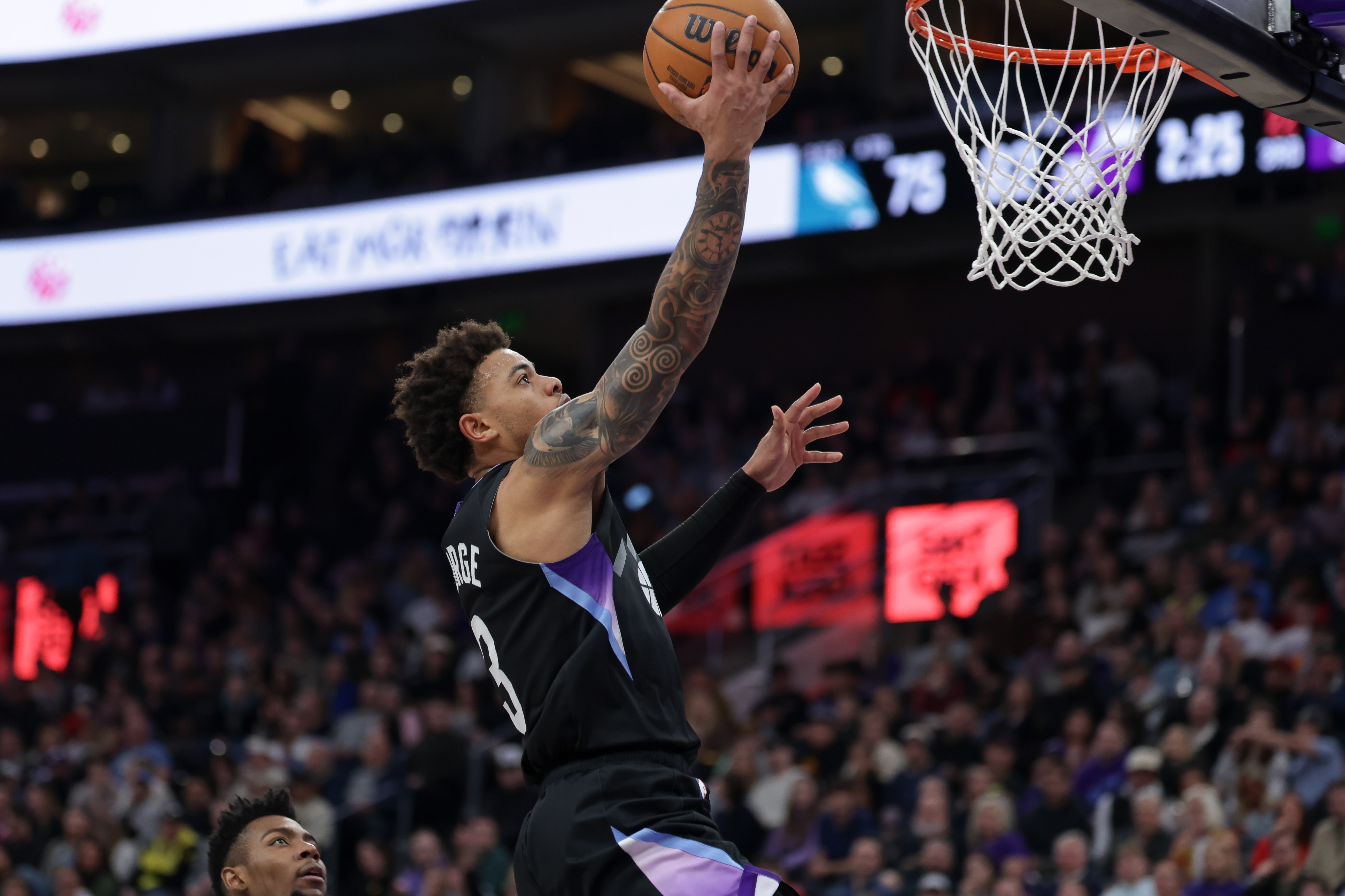 爵士球員喬治上半場狀態(tài)火熱,他憑借一己之力扛起球隊(duì)緊咬比分。他上半場打了14分21秒,10投6中,其中三分5中3,罰球8中5,拿到20分6籃板2助攻。