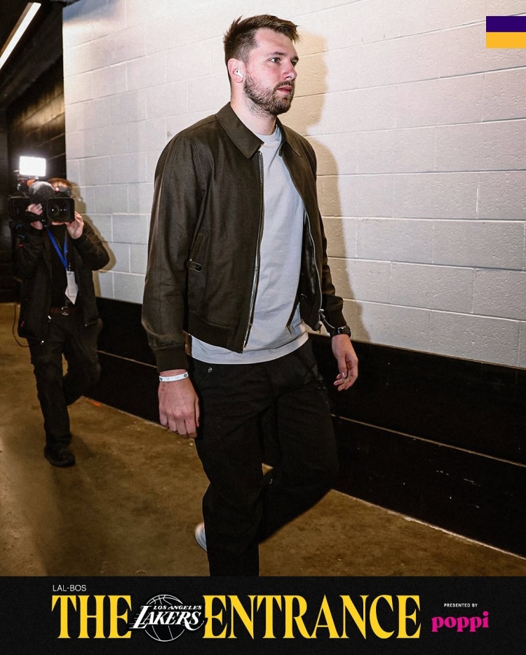 湖人眾將入場(chǎng)穿搭:東契奇低調(diào)如常 文總夾克套衛(wèi)衣 老詹帽子吸睛