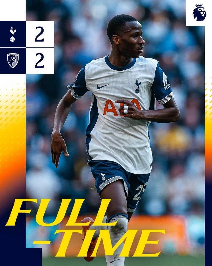3月10日訊 本輪英超焦點(diǎn)戰(zhàn),熱刺在主場2球落后情況下最終戰(zhàn)平伯恩茅斯。