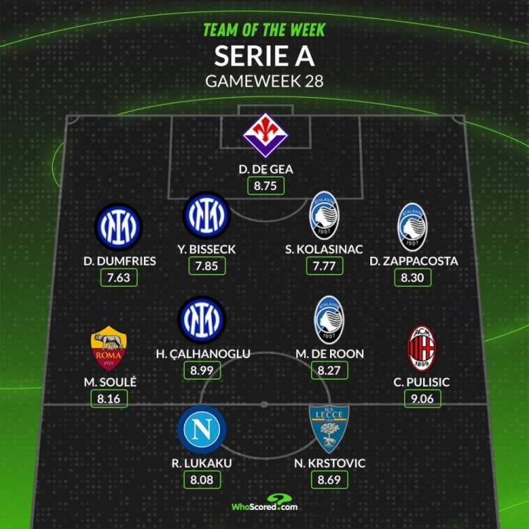 3月11日訊 意甲第28輪聯(lián)賽已經(jīng)完賽,whoscored也統(tǒng)計了本輪意甲最佳陣容,國米和亞特蘭大各3將入圍。