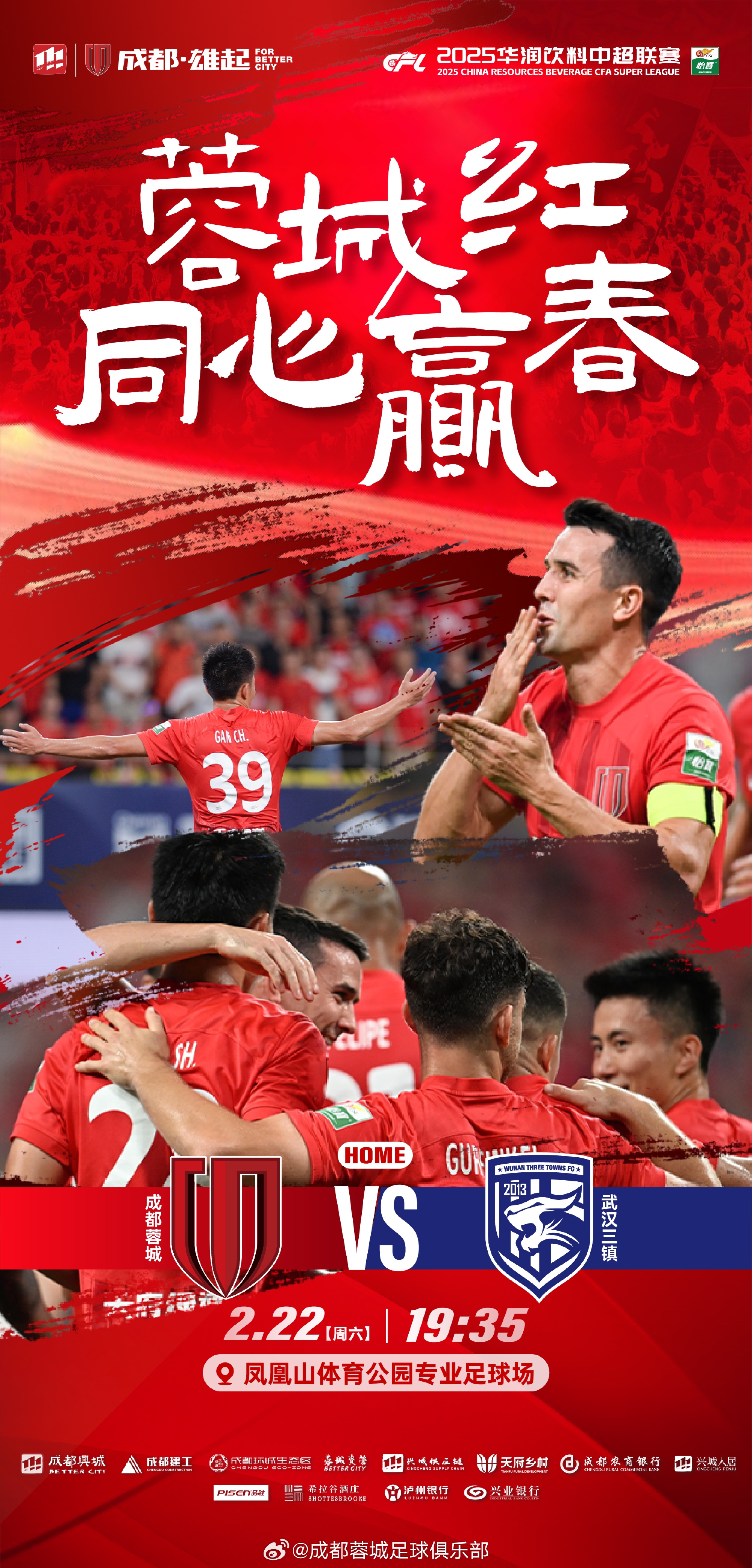 02月22日訊 新賽季中超首輪,成都蓉城vs武漢三鎮(zhèn)的比賽將在19:35打響,賽前首發(fā)陣容已公布。
