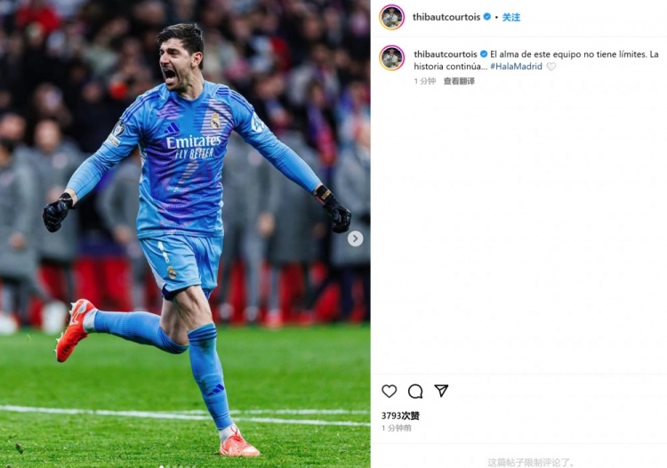 對老東家單場7撲救!庫爾圖瓦社媒曬狂奔慶祝照:故事還在繼續(xù)…