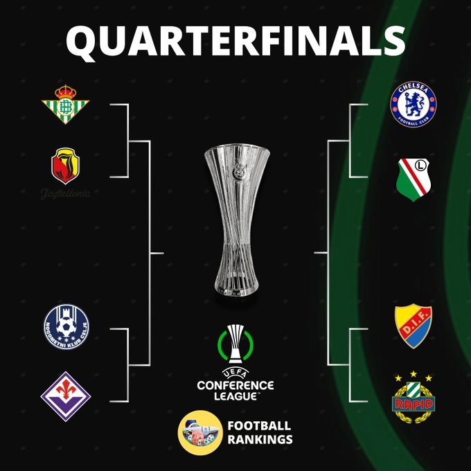 3月14日訊 歐協(xié)聯(lián)八強(qiáng)全部出爐,歐足聯(lián)官網(wǎng)也公布了歐協(xié)聯(lián)1/4決賽賽程,以下開球時(shí)間皆為北京時(shí)間。