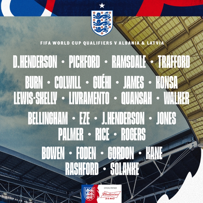 本期英格蘭隊(duì)將在3月底出戰(zhàn)兩場(chǎng)世預(yù)賽,對(duì)手分別是阿爾巴尼亞和拉脫維亞。