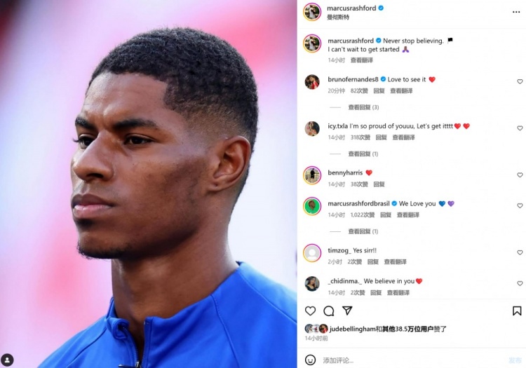 拉什福德也在個人社媒曬照,配文寫道:“永遠(yuǎn)不要停止相信,我已經(jīng)迫不及待想要開始了?!?/p>
