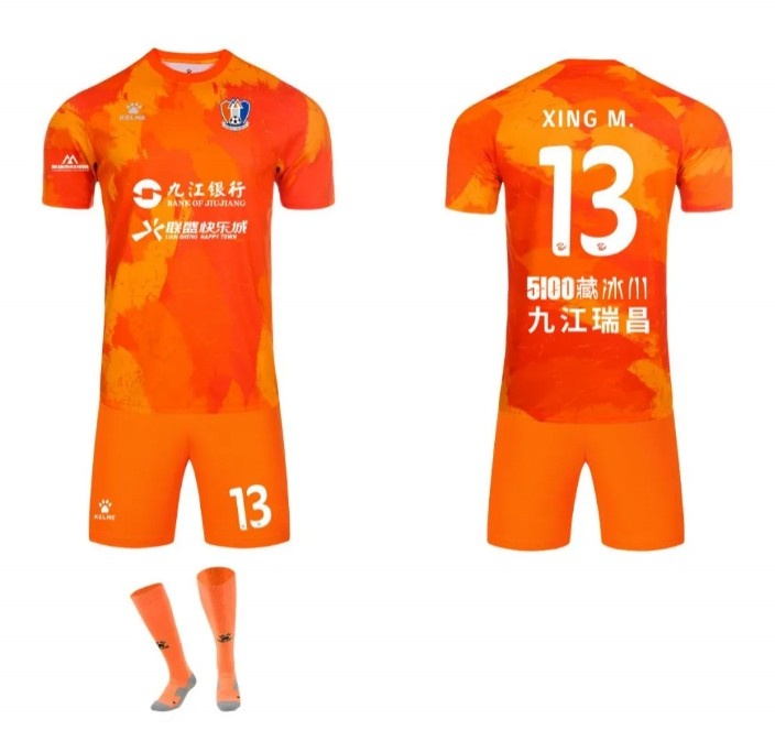 主場戰(zhàn)袍延續(xù)了江西廬山隊經(jīng)典的橙色主色調(diào),象征著激情、活力與勝利。球衣正面采用漸變設計,猶如長江之水奔流不息,寓意著江西足球生生不息,勇往直前。球衣背面印有“九江瑞昌”字樣,彰顯著球隊為江西、為九江、為瑞昌榮譽而戰(zhàn)的決心。