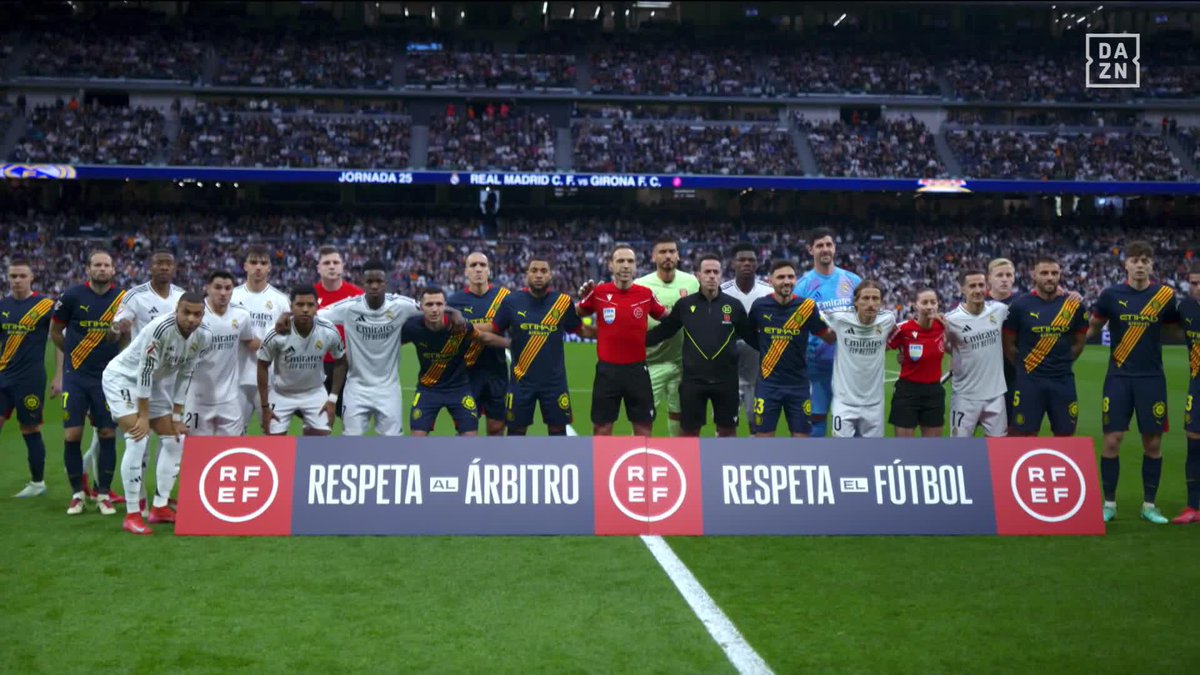 皇馬、赫羅納在“尊重裁判、尊重足球”標(biāo)語(yǔ)前合影,球迷爆發(fā)噓聲