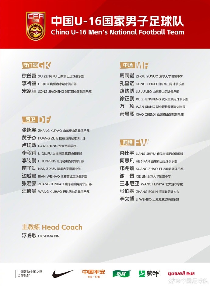 U16國足集訓(xùn)名單:梁仕宇、萬項、鄺兆鐳在列,泰山8人