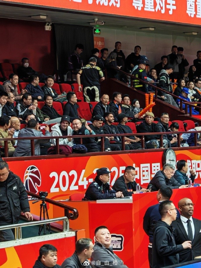 泰山隊博主“自_由_橙”曬出圖片,泰山外援克雷桑、馬德魯加、瓦科、卡扎爾現(xiàn)場觀戰(zhàn)CBA山東高速的主場比賽。