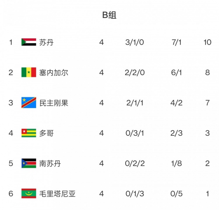 B組:馬內(nèi)領(lǐng)銜的塞內(nèi)加爾意外落后蘇丹,兩隊(duì)將于本周五迎來一次正面對(duì)決