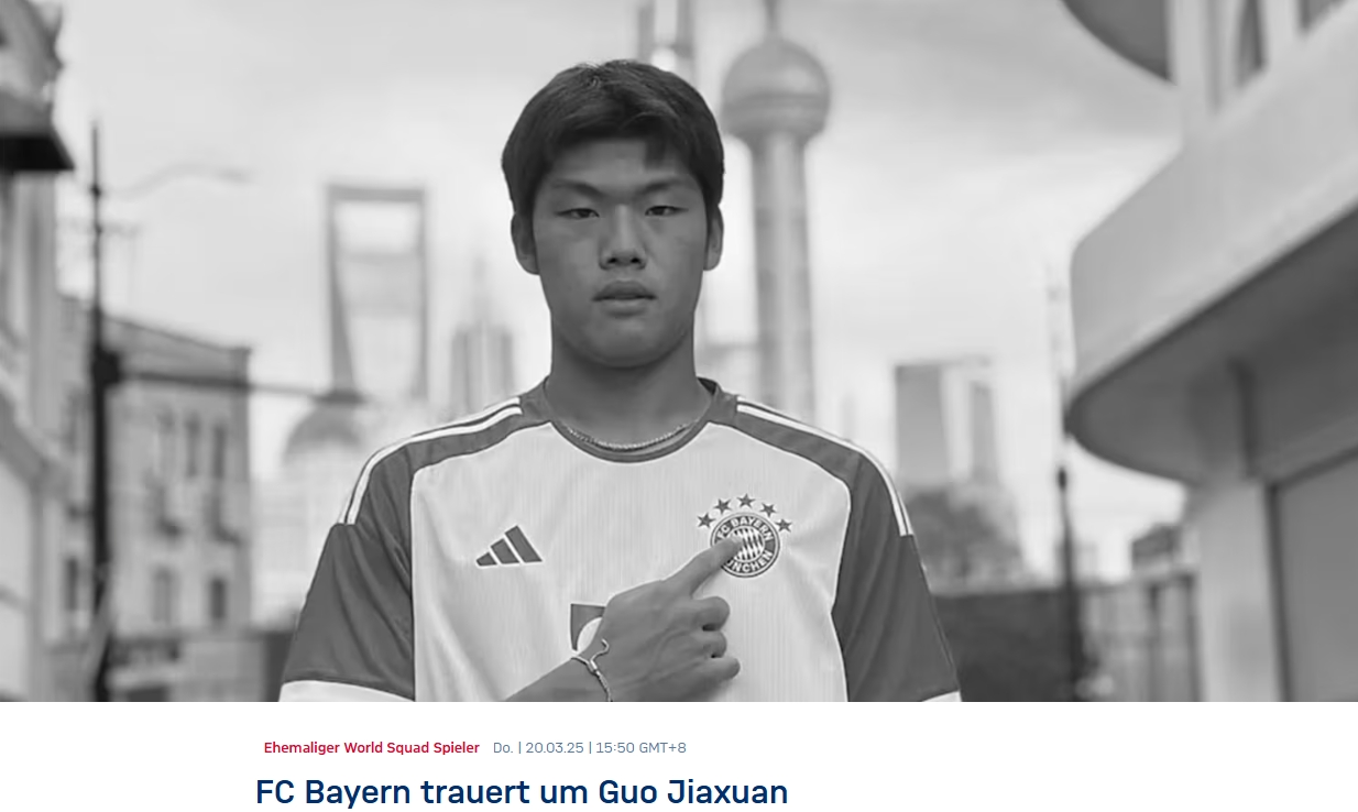 03月20日訊 18歲的國(guó)安青訓(xùn)小將郭嘉璇昨日去世,拜仁官方今日發(fā)文表示哀悼。