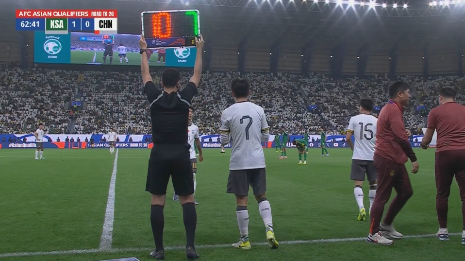 國足還有1次換人名額!沙特使用了腦震蕩換人,國足因此能換6人!