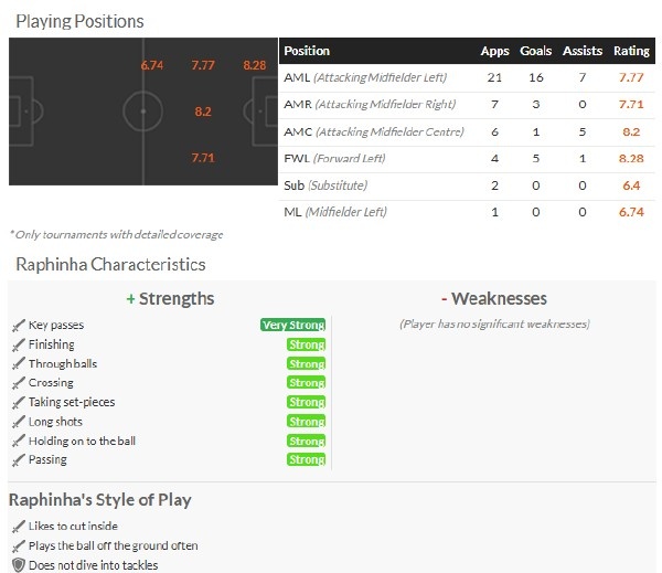 拉菲尼亞本賽季在巴薩的表現(xiàn)非常出色,甚至被視為金球獎最熱門的候選人之一。問題是,他在巴薩踢得好,是因為被當做攻城拔寨的前鋒來使用。