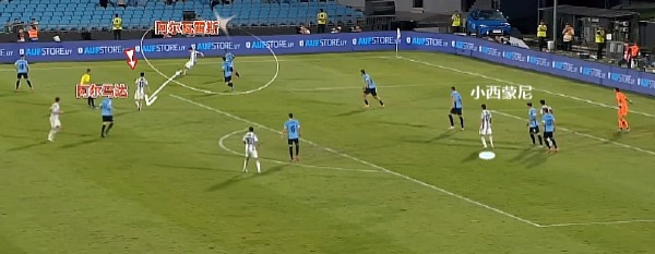包括與烏拉圭比賽中的唯一進球,就是阿爾瓦雷斯往邊路走,吸引2人防守注意力后轉(zhuǎn)身回做,給到禁區(qū)前被放空的阿爾馬達。
