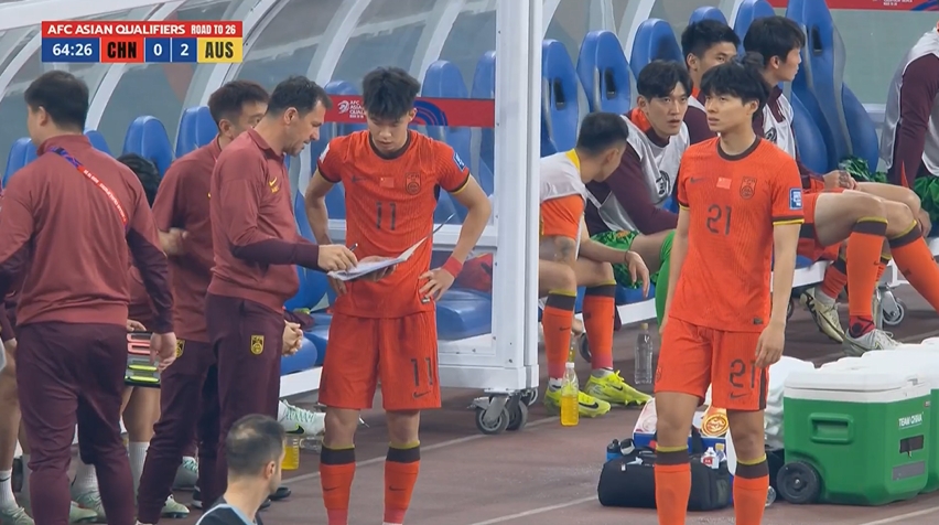 比賽第65分鐘,國足做出換人調(diào)整,王鈺棟、汪海健登場,換下謝文能、黃政宇。