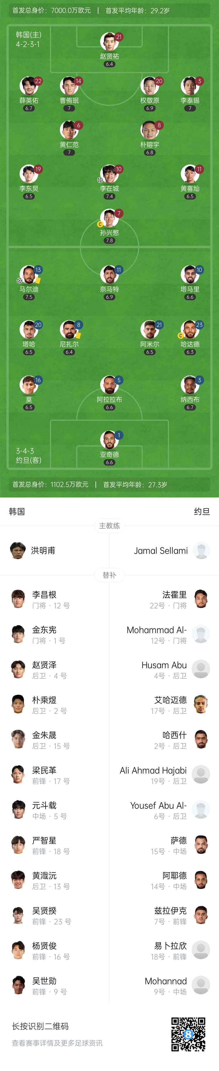3月25日訊 18強賽B組第8輪,韓國坐鎮(zhèn)主場首爾世界杯體育場迎戰(zhàn)約旦。上半場,孫興慜角球助攻李在城閃擊破門,馬爾迪扳平。半場戰(zhàn)罷,韓國1-1約旦。