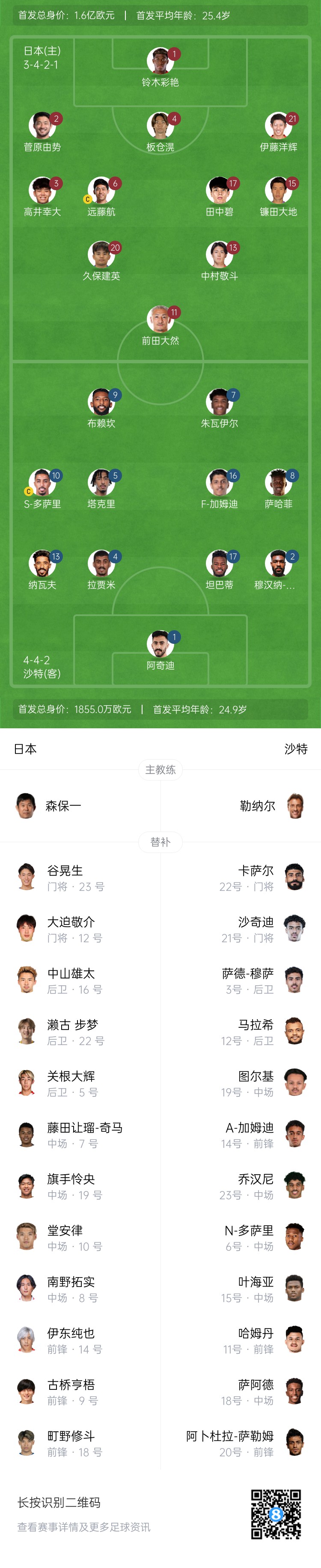03月25日訊 北京時(shí)間18點(diǎn)35分,世預(yù)賽亞洲區(qū)第三階段C組第8輪,日本vs沙特,賽前雙方首發(fā)公布!日本已經(jīng)提前鎖定2025年世界杯席位,本場比賽他們對首發(fā)進(jìn)行了輪換。