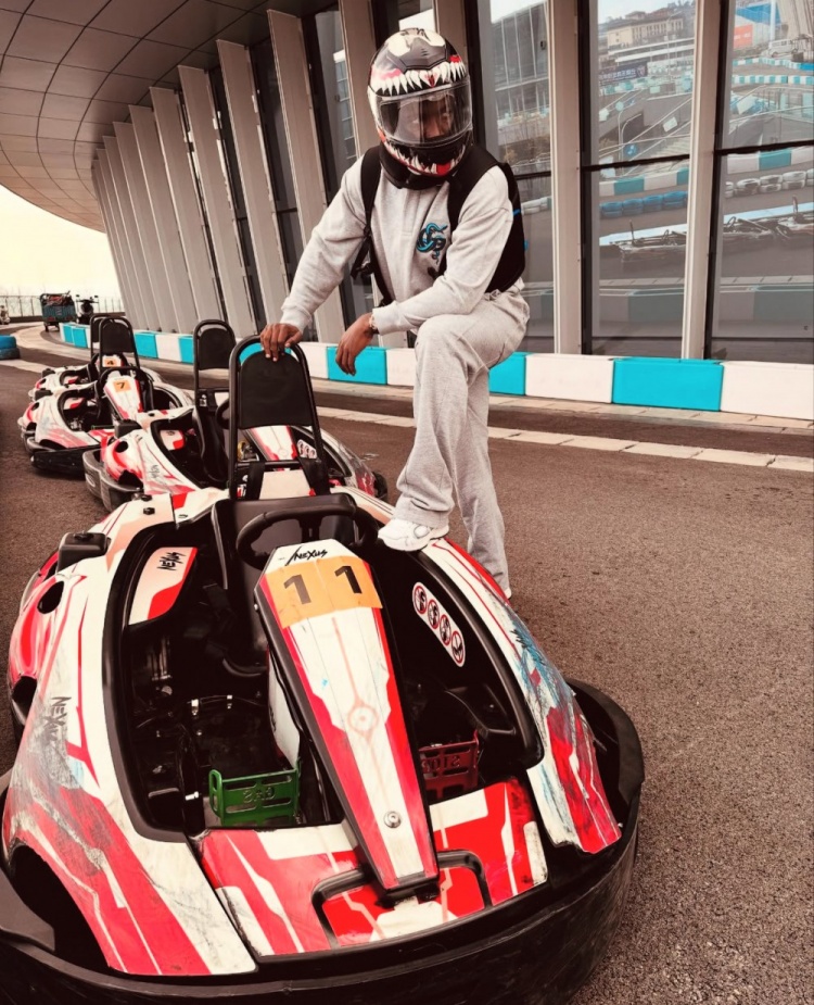 各種pose擺個(gè)不停,小奧斯卡社媒曬與賽車合影