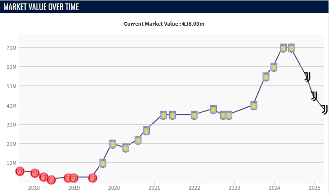 03月26日訊 昨日德轉(zhuǎn)更新意甲球員身價,去年夏窗轉(zhuǎn)會至尤文的道格拉斯-路易斯身價再次下跌,僅剩3800萬歐,而他在去年從維拉轉(zhuǎn)會至尤文時,身價還高達(dá)7000萬歐。