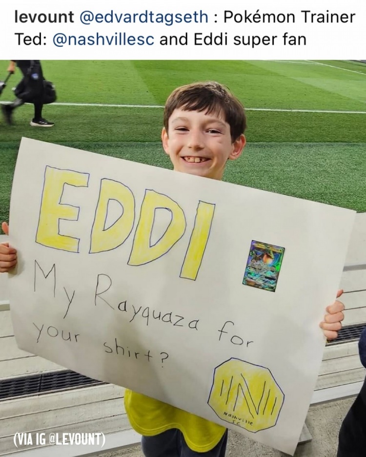 3月26日訊 美職聯(lián)球隊(duì)納什維爾SC的官方Instagram最近發(fā)文,表示一位小球迷用寶可夢(mèng)卡牌換到了球員的球衣。