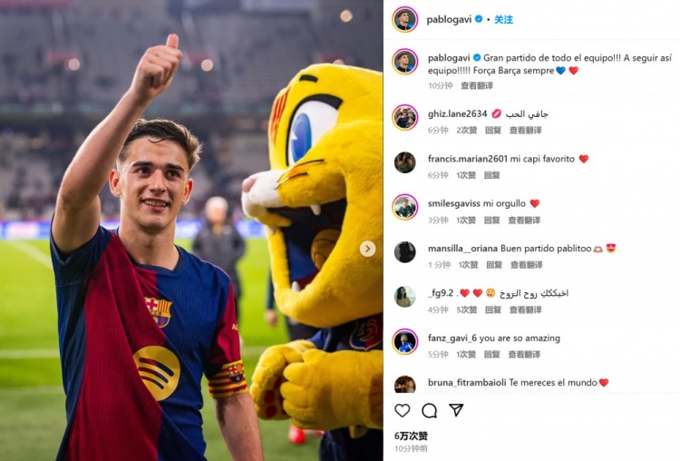 作為隊(duì)長首發(fā)!20歲加維社媒:全隊(duì)踢出精彩比賽,巴薩繼續(xù)加油!